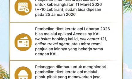 KAI kembali membuka pemesanan tiket kereta api untuk masa Angkutan Lebaran dengan skema pemesanan H-45 sebelum keberangkatan. Kebijakan ini bertujuan memberikan kemudahan...